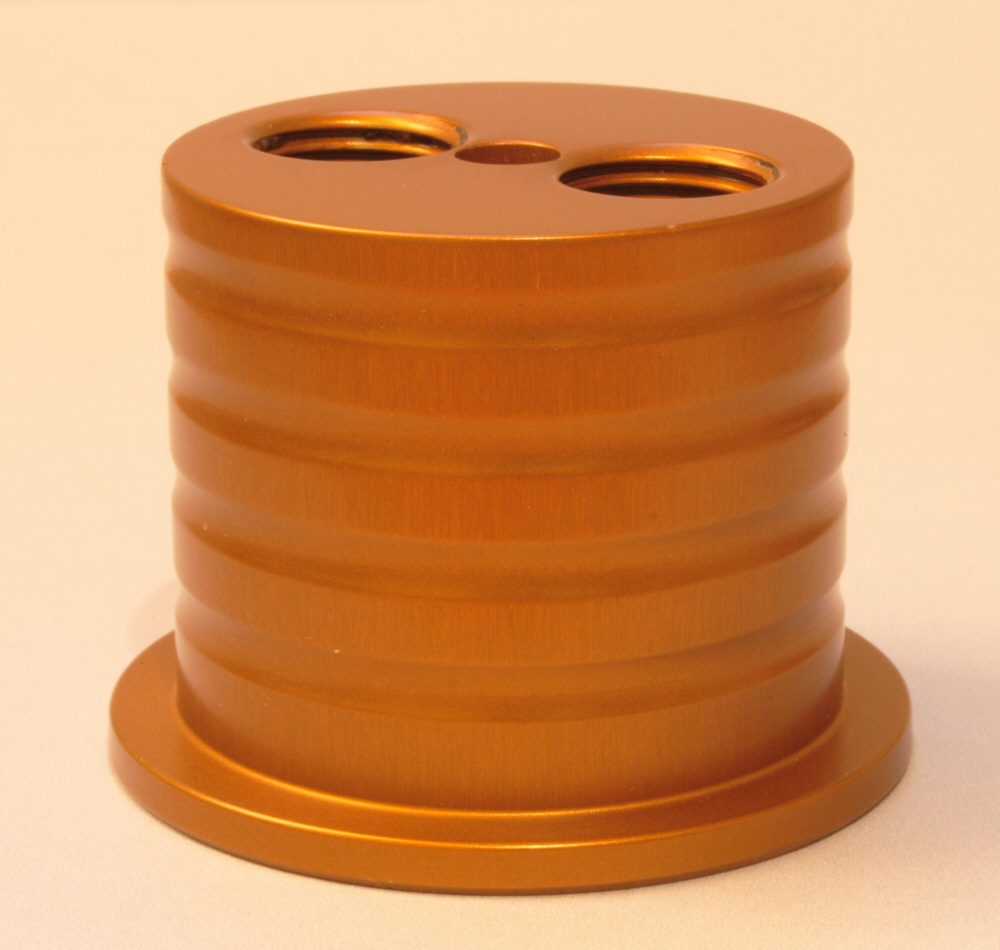 Auf dem Bild schlecht zu sehen, aber eine Temperatur unter 10° während des Eloxiervorgangs macht die Eloxalschicht subjektiv deutlich härter.