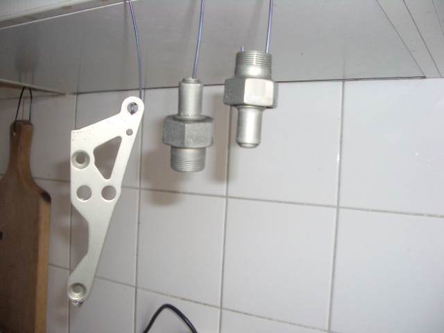 Die schwarzen Teile sind für mein Minibike. Ich habe sie 90 min. anodisiert und 5 min. gefärbt. Die orangenen Teile sind für eine Wasserkühlung eines PC's. Sie sind 30 min anodisiert und 30 min. gefärbt. Beim anodisieren hab ich festgestellt, das sich die Teile nach genau 30 min dunkel färben und somit aus dem orange ein dunkelbraun wird. Daher auch die kurze Anodisierzeit von nur 30 min. Leider kenne ich die Legierung nicht, es ist noch altes DDR-Material.