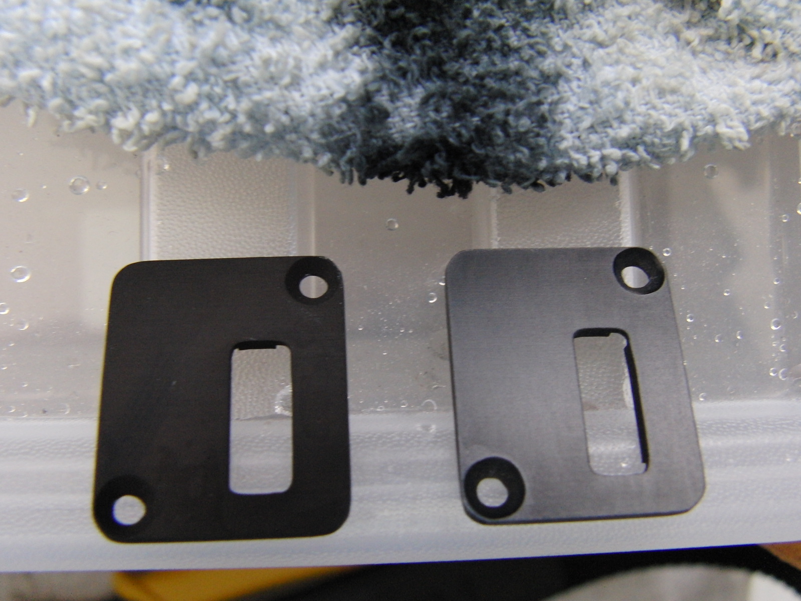 Links der pelzige Belag, rechts das Werkstück so wie es sein soll nach dem abwischen.... es sieht in Wirklichkeit besser aus als auf dem Foto (schön schwarz mit mattem Glanz)