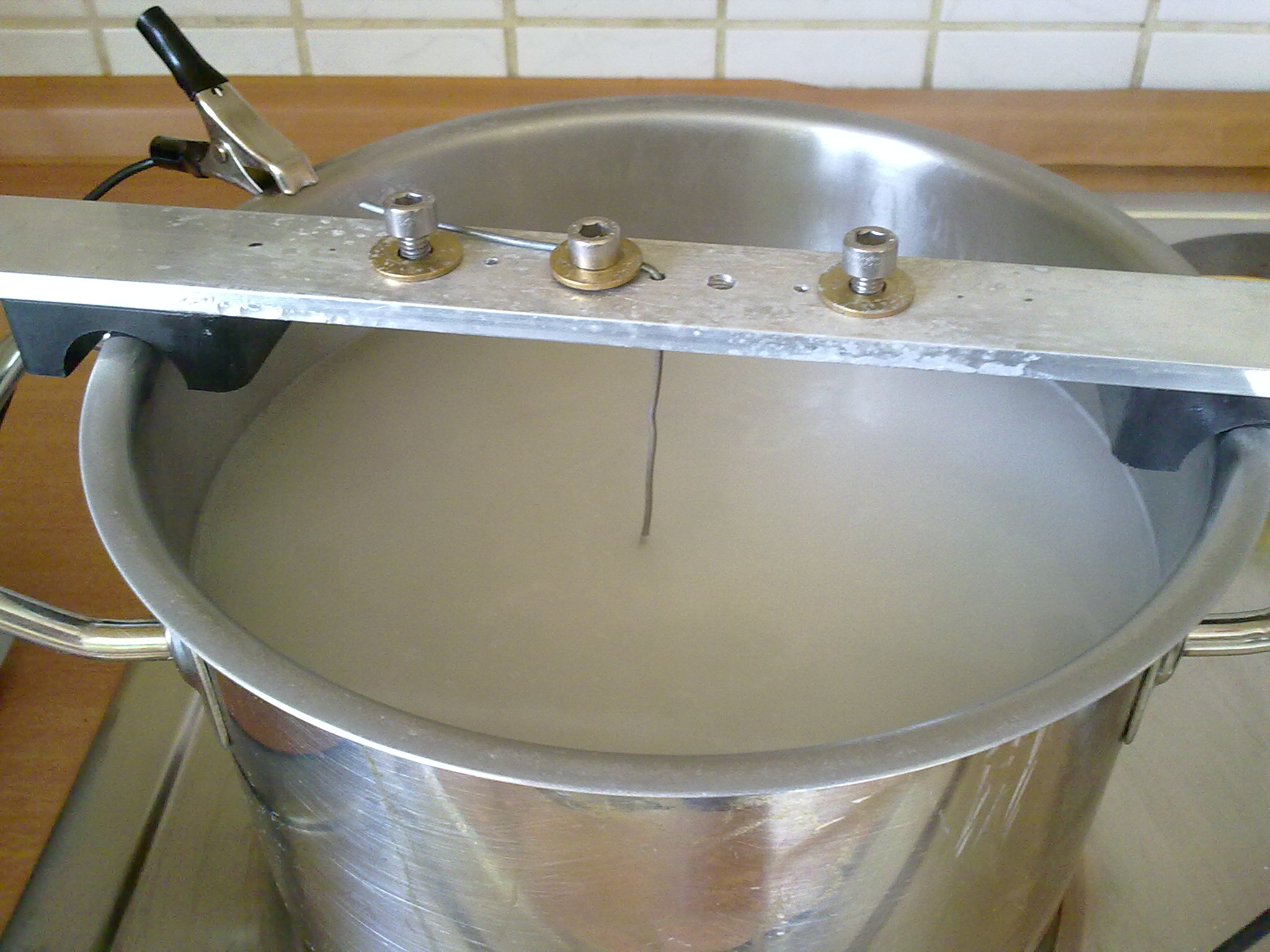 Chrischan noch ein Tip, geh von der Spannungsregelung weg, je Wärmer die Lösung wird umso niederohmiger wird das ganze und die Stromdichte lässt sich perfekt zur Fläche des Bauteils regeln. Ach ja der Titandraht wirkte sich jetzt in keinster Weise negativ aus. Ich hoffe das du dich im ersten Beitrag verschrieben hast und nicht den Behälter als Anode (+) nutzt.