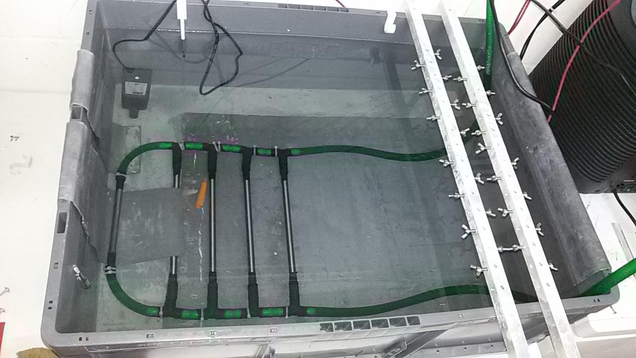 ich habe mal eine Frage zu der Dimensionieren einer Kühlung für das Säurebecken. Bisher habe ich meine Säure mittels Pumpe durch einen alliere, der durch eine mit Wasser gefüllte Kiste in der Kühltruhe führte. Das hat bisher gut funktioniert und ich hatte das gleichzeitig für die Umwälzung genutzt. 2 Fliegen mit einer Klappe.