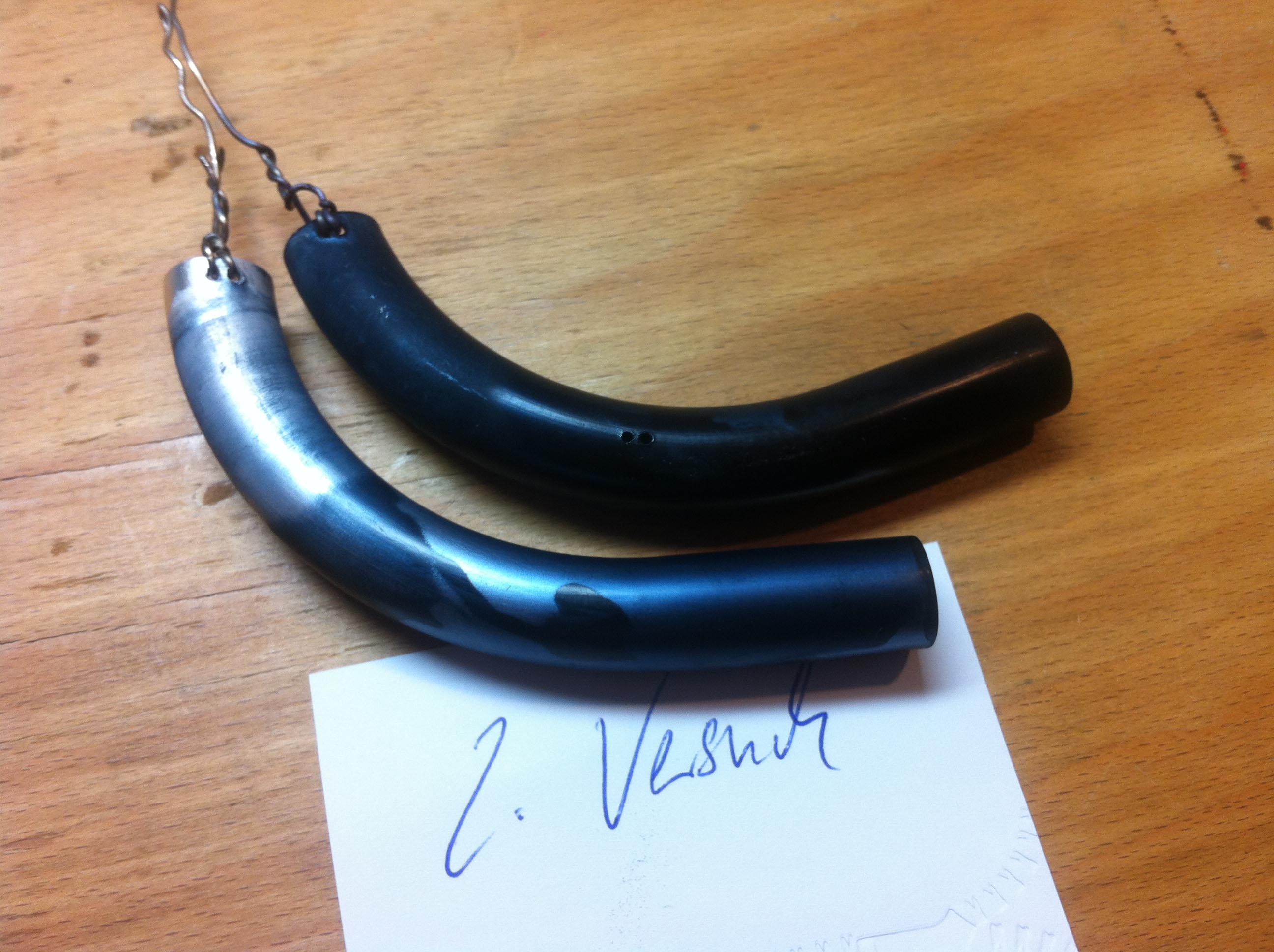In zwei Versuchen habe ich je 2 Rohre versucht zu eloxieren.