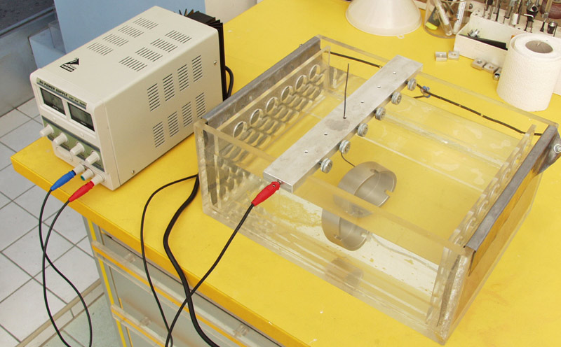 Meine Überlegung ist, die Aluplatten nicht senkrecht, sondern waagrecht (an 3 oder 4 Punkten) ins Säurebad zu hängen, da ich ja sonst ein riesiges Behältnis bräuchte.