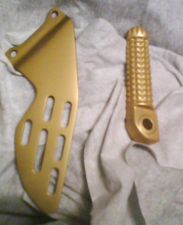 Habe einen Bremszylinder Schutz und einen Endschaldämpfer Halter für eine TM Racing MX 125 eloxiert.