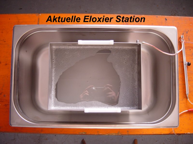 Vor dem Eloxieren kurz in Natronlauge geschwenkt und gespühlt.