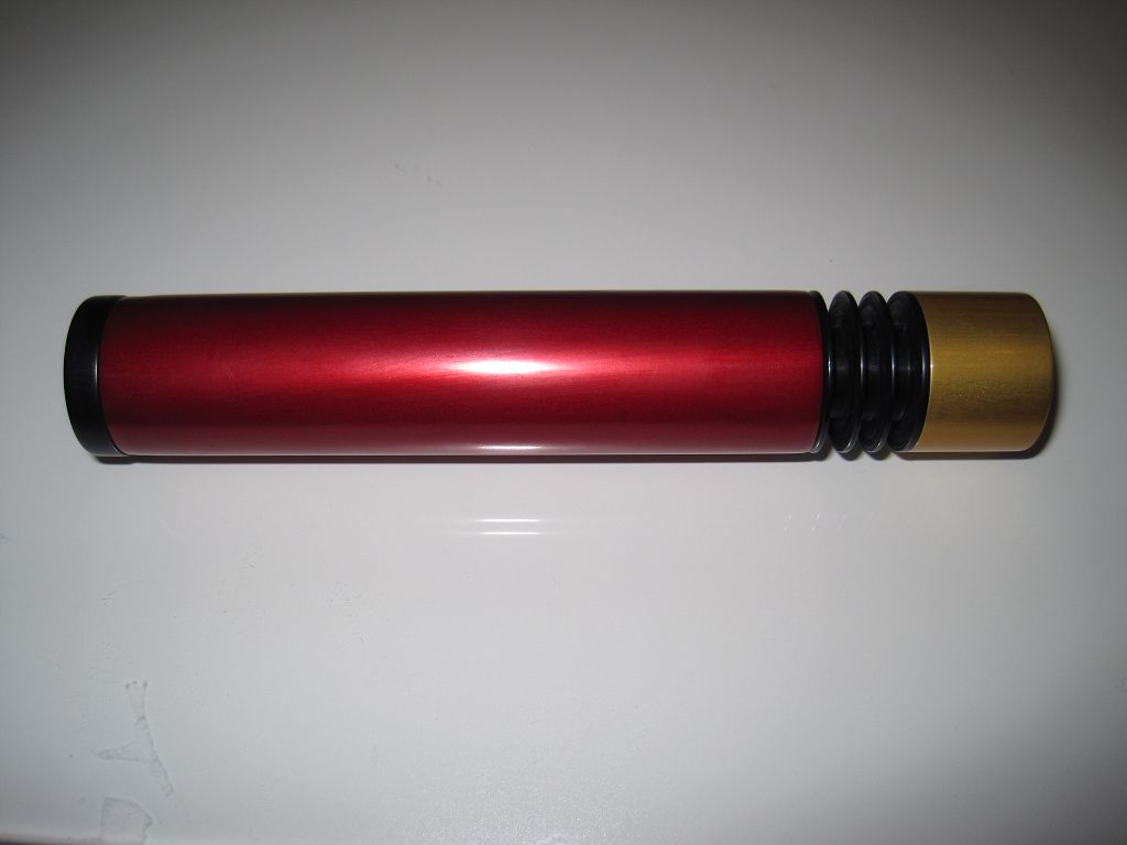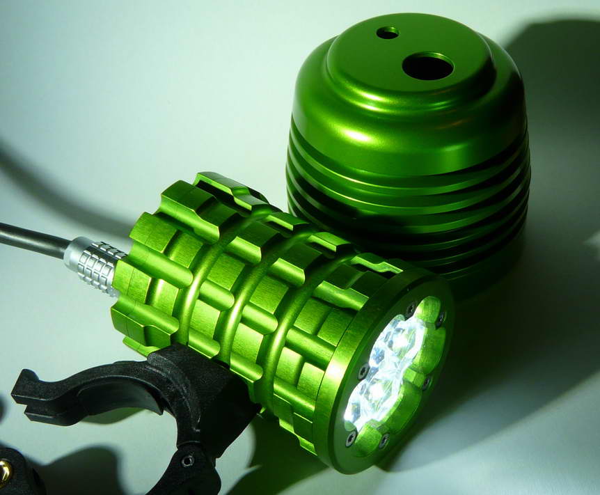 Das kleine Lampengehäuse(7075) ist noch ohne Umwälzung eloxiert worden.