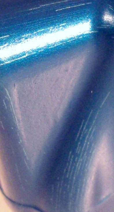 Die etwa 50fache Vergrösserung zeigt einige Fehler die mit bloßem Auge nicht auffallen. Allerdings traten die Streifen diesmal nicht auf, obwohl man im Bild 10 deutlich die "Spanbruchstellen" sieht. Vielleicht hat dieses Phänomen auch eine andere Ursache.