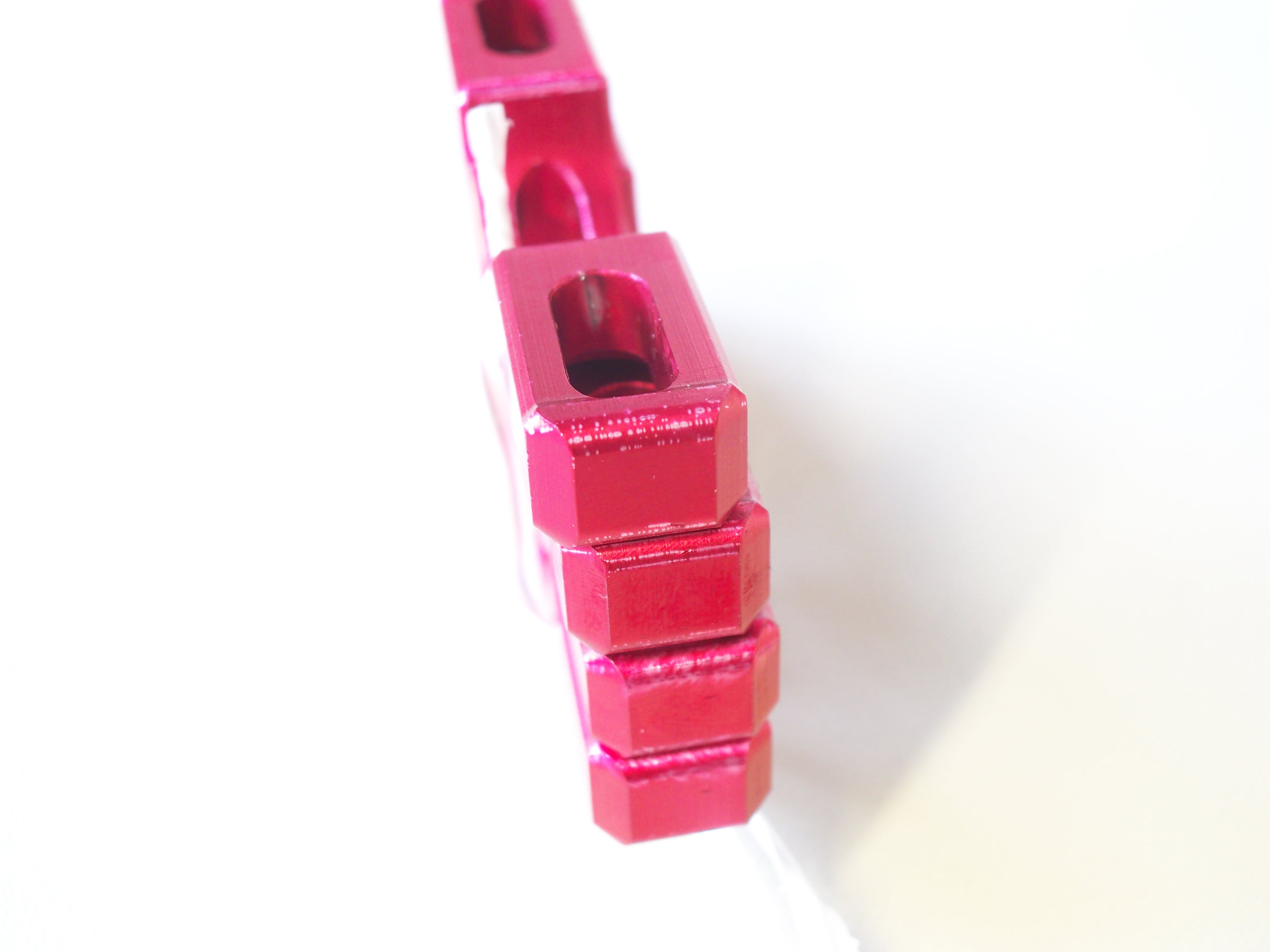 Jetzt habe ich schon wieder Teile mit diesen Spuren. Das ungewöhnliche ist, dass es einfache Frästeile aus 6061 sind. Die Oberfläche habe ich genauestens durch CAD bestimmt. Die Badtemperatur sowie Konzentration waren ideal.