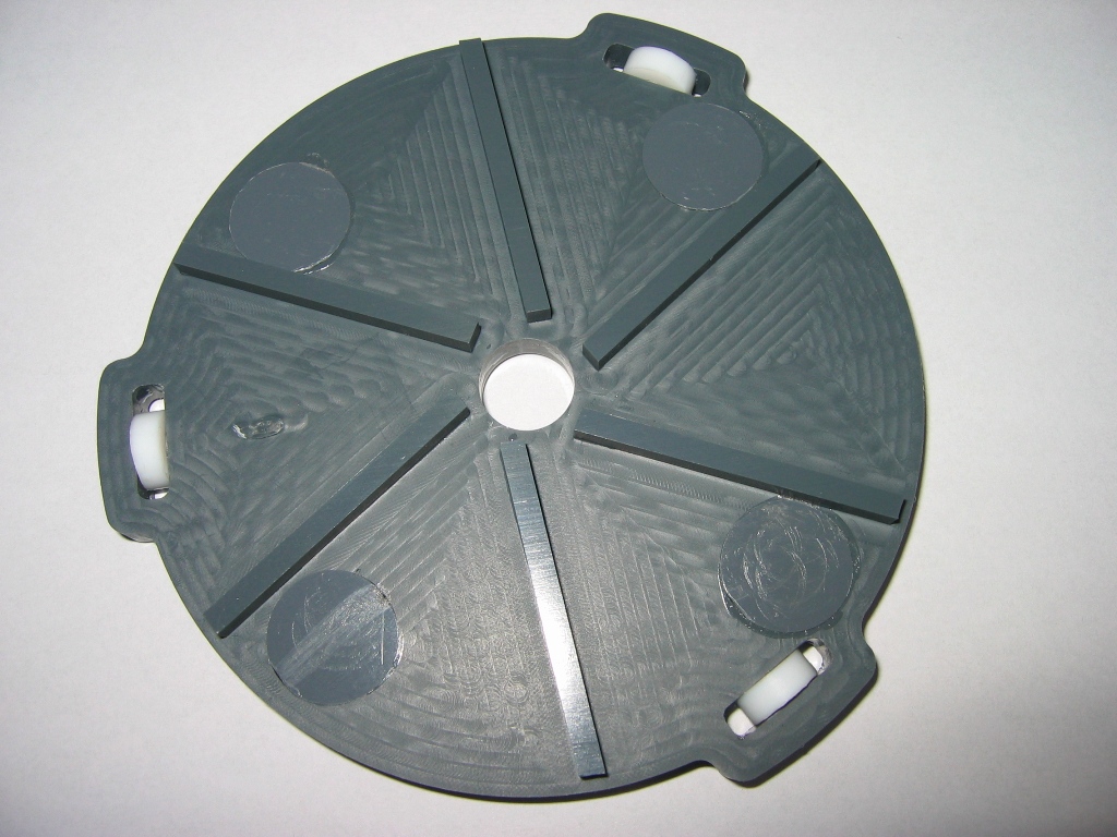 Im Anhang mal ein Bild des Rührers, ist aber Version 1, Version 2 muss ich noch fräsen. Die 4 Rollen haben sich als ungünstig erwiesen, da sie zum klappern anfangen, da nicht immer alle 4 Kontakt haben. Der nächste Rührer hat 3 Rollen. Den muss ich aber erst noch fräsen.
