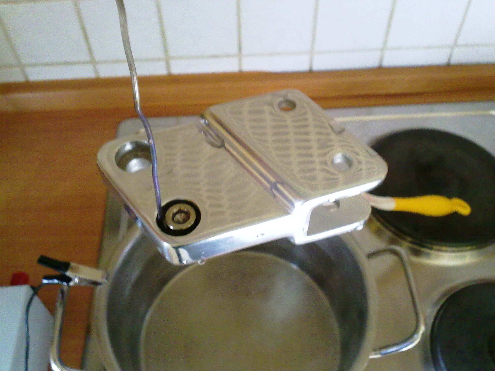 Beim aufschalten des Stroms hab ich erstmal einen leichten Schreck bekommen, mensch da steppt die Luzie in dem Kübel, das hat sich aber relativ schnell wieder beruhigt. Die Tauchzeit war relativ kurz, sprich mit 8 min in dem angegebenen Rahmen. Allerdings spricht das Ergebnis Bände, ein astreiner Spiegel ohne Kratzer oder Macken, einfach perfekt.