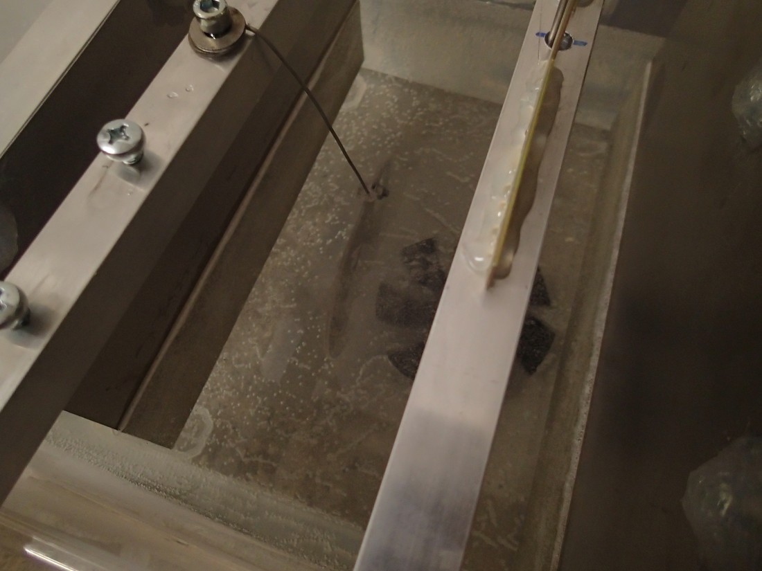 - Werkstück ca. 160cm² an Titandrat fest verbunden