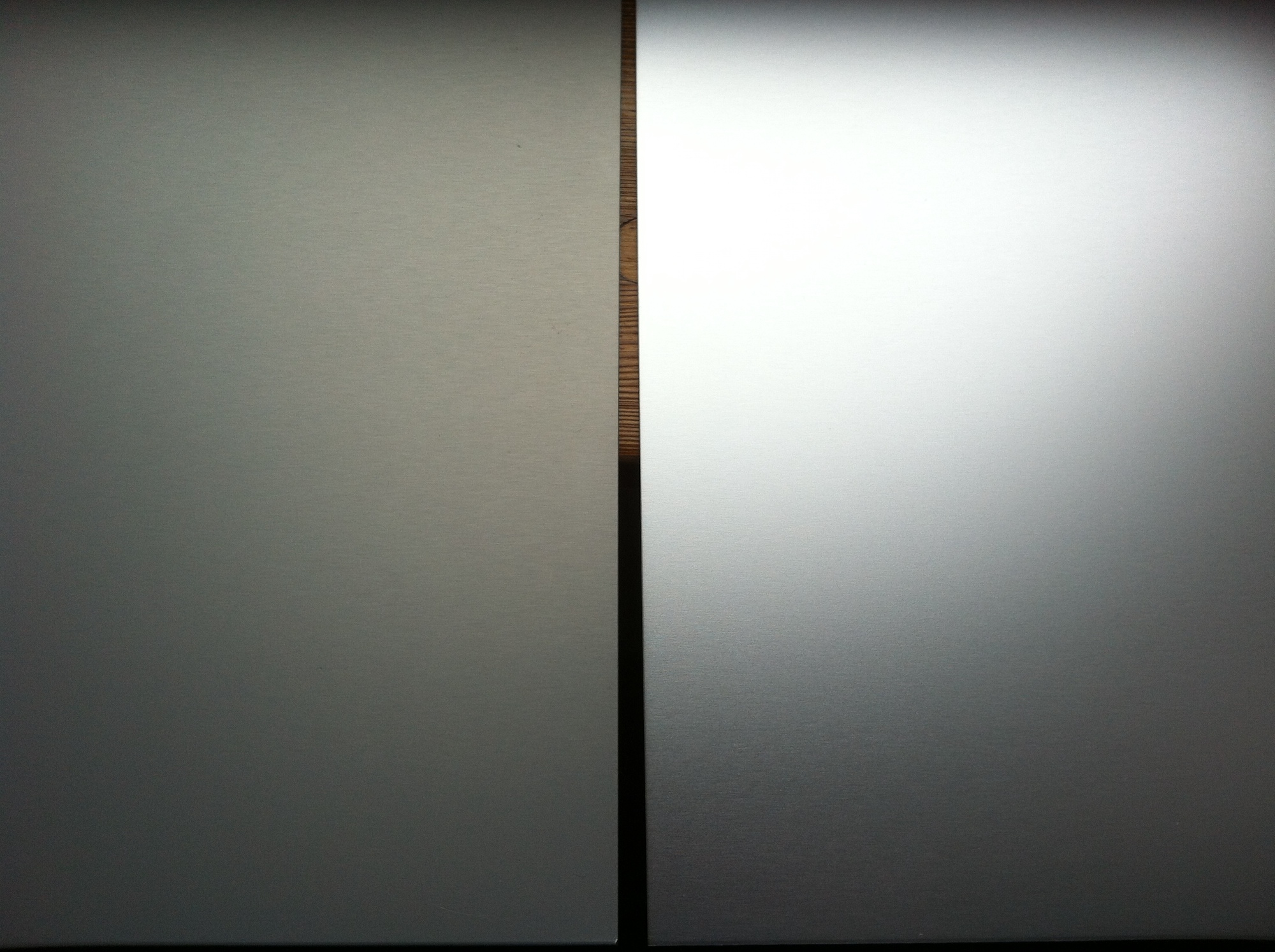 Doch die linke Platte zeigt mit ihrer dickeren Eloxalschicht einen Grünstich