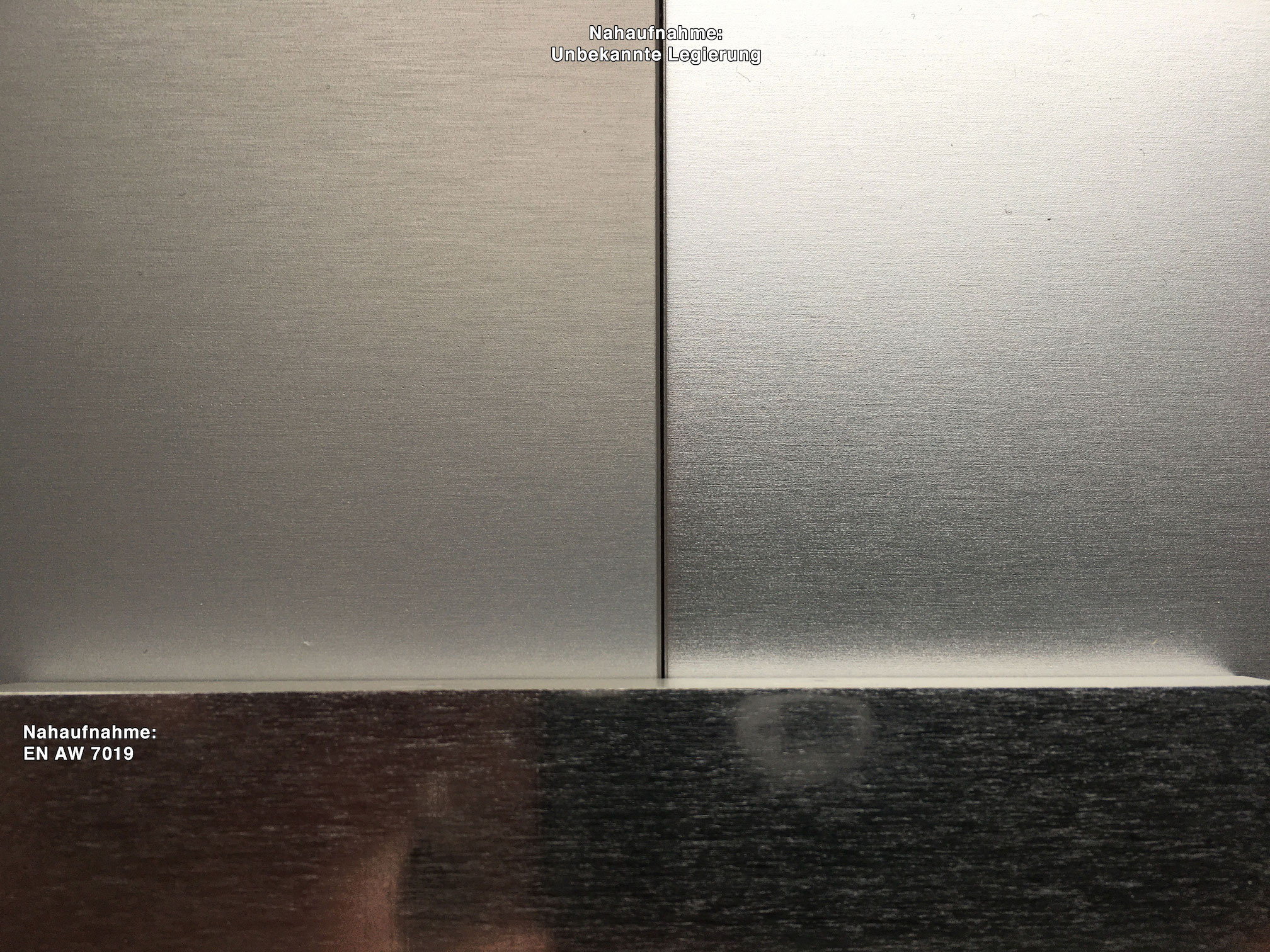 Aber die linke Platte ist mit 35µm stärker eloxiert als die rechte mit 20µm.