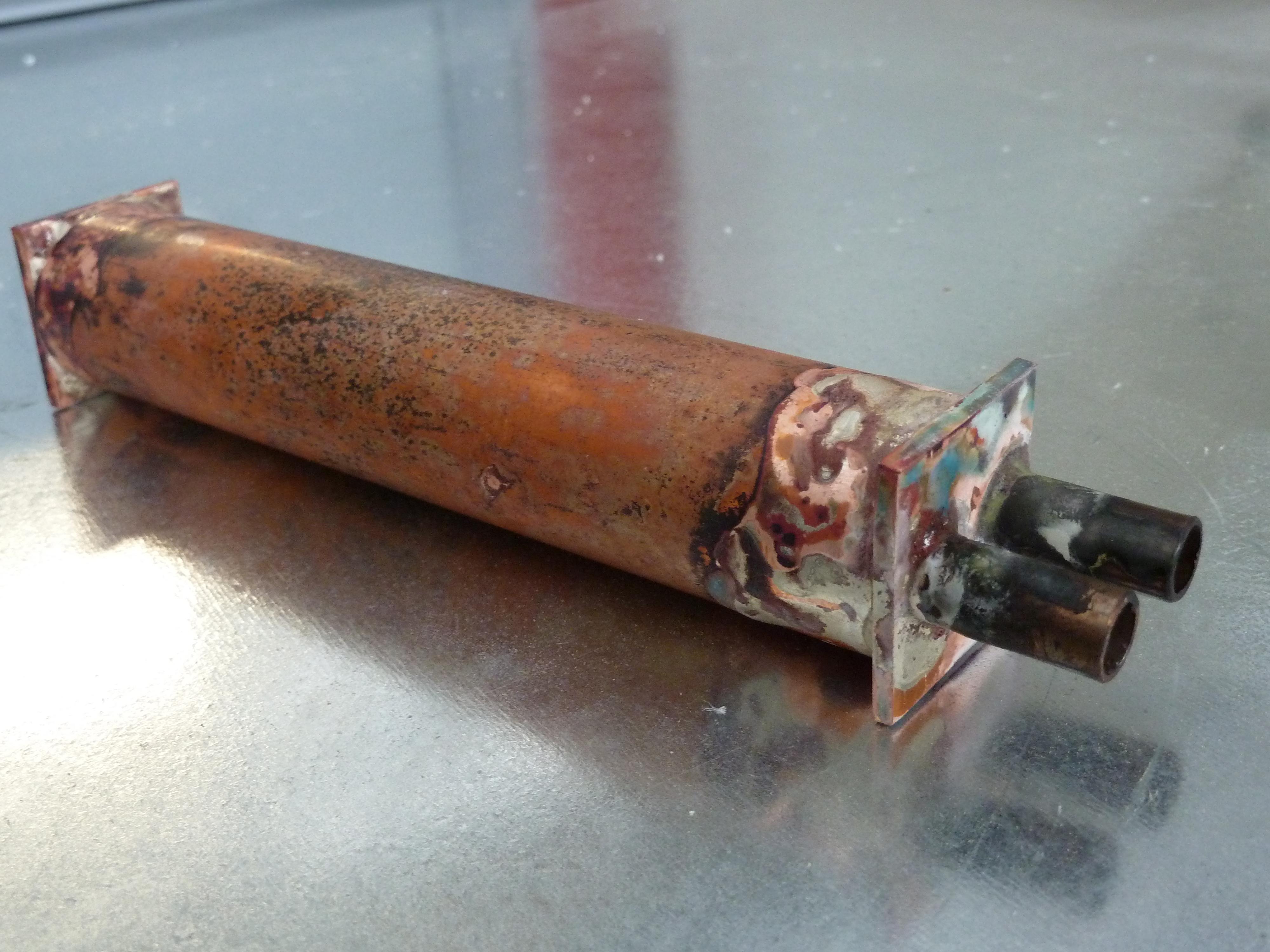 mit einem Kupferdeckel durch hartlöten verschlossen wurde. In den oberen Deckel wurden zusätzlich zwei Edelstahlrohre