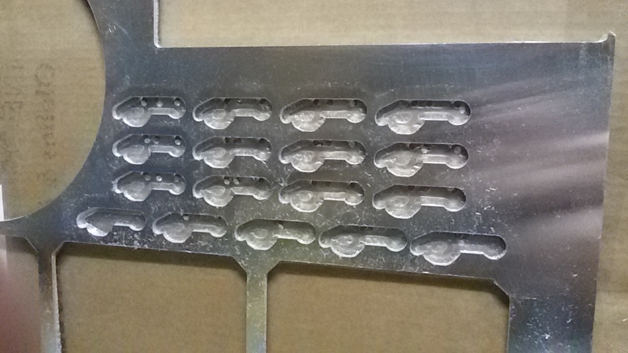 Schau auf das Bild. Da kannst du sehen, dass 17 Flaschenöffner ausgefräst wurden. Und zwar aus dem gleichen Blech.