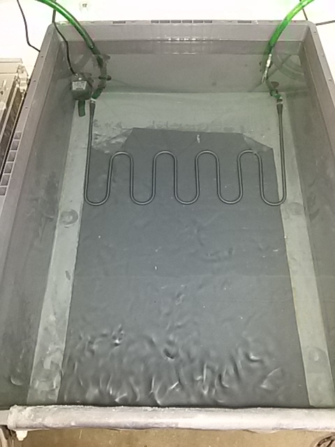 Während meine "alte" Kühlschlange aus einzelnen Titanröhrchen bestand und das grosse Becken so gekühlt hat das ich meine ganze tägliche Freizeit mit eloxieren verbringen konnte, reicht die für 2 Becken nicht mehr aus. Mein Plan war nämlich die Kühlschlange durch beide Becken zu führen und keinen zusätzlichen Hailea zu kaufen. Da dieses vorhaben so nicht geklappt hat musst eine bessere Wärmeabfuhr her damit das ursprüngliche Vorhaben so passt.