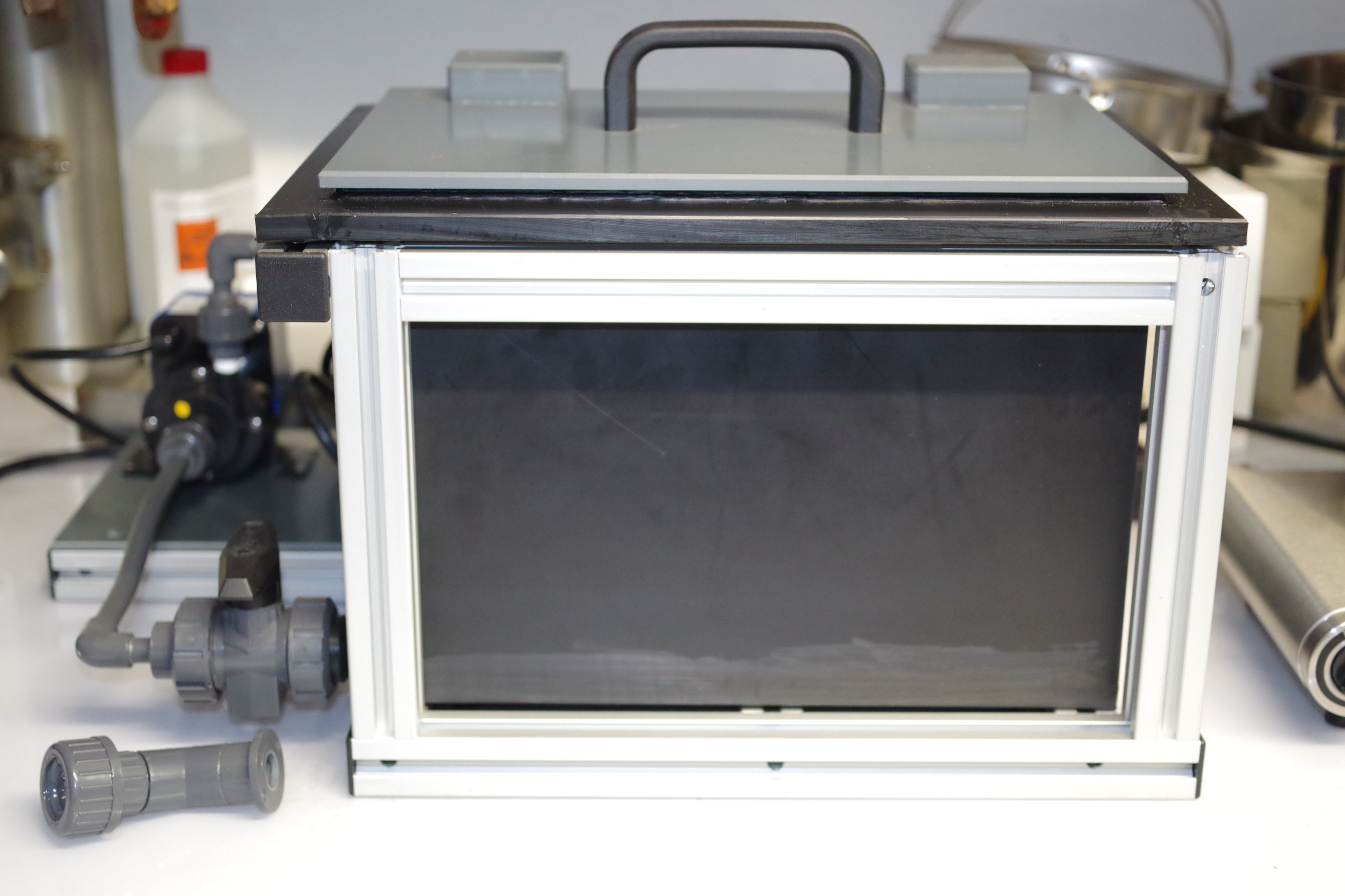 2x Eloxierbehälter 380x250x250mm, einer in schwarz mit richtiger Säure-pumpe (keine Aquarium-pumpe) zum umspülen der Teile beim eloxieren. Die Behälter wurden in einer Kunstofffirma nach meiner Zeichnung hergestellt und sind verschweisst, nicht verklebt. Die Pumpe und der Behälter haben PVC Kugelhähne zum sicheren ablassen der Säure. Der zweite PVC Behälter ist Ersatz.